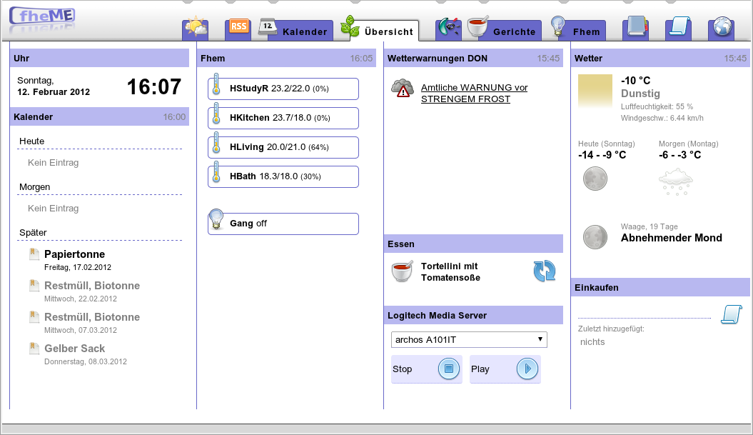 Fhem is a GPL'd perl server for house automation. It is used to automate some common tasks in the household like switching lamps / shutters / heating / etc. and to log events like temperature / humidity / power consumption. The program runs as a server, you can control it via web or smartphone frontends, telnet or TCP/IP directly. In order to use FHEM you'll need a 24/7 server (Fritz!Box, NAS, RPi, PC, MacMini, etc) with a perl interpreter and some attached hardware like the CUL, FHZ1300PC, etc. to access the actors and sensors. See the "Supported hardware" section below.
