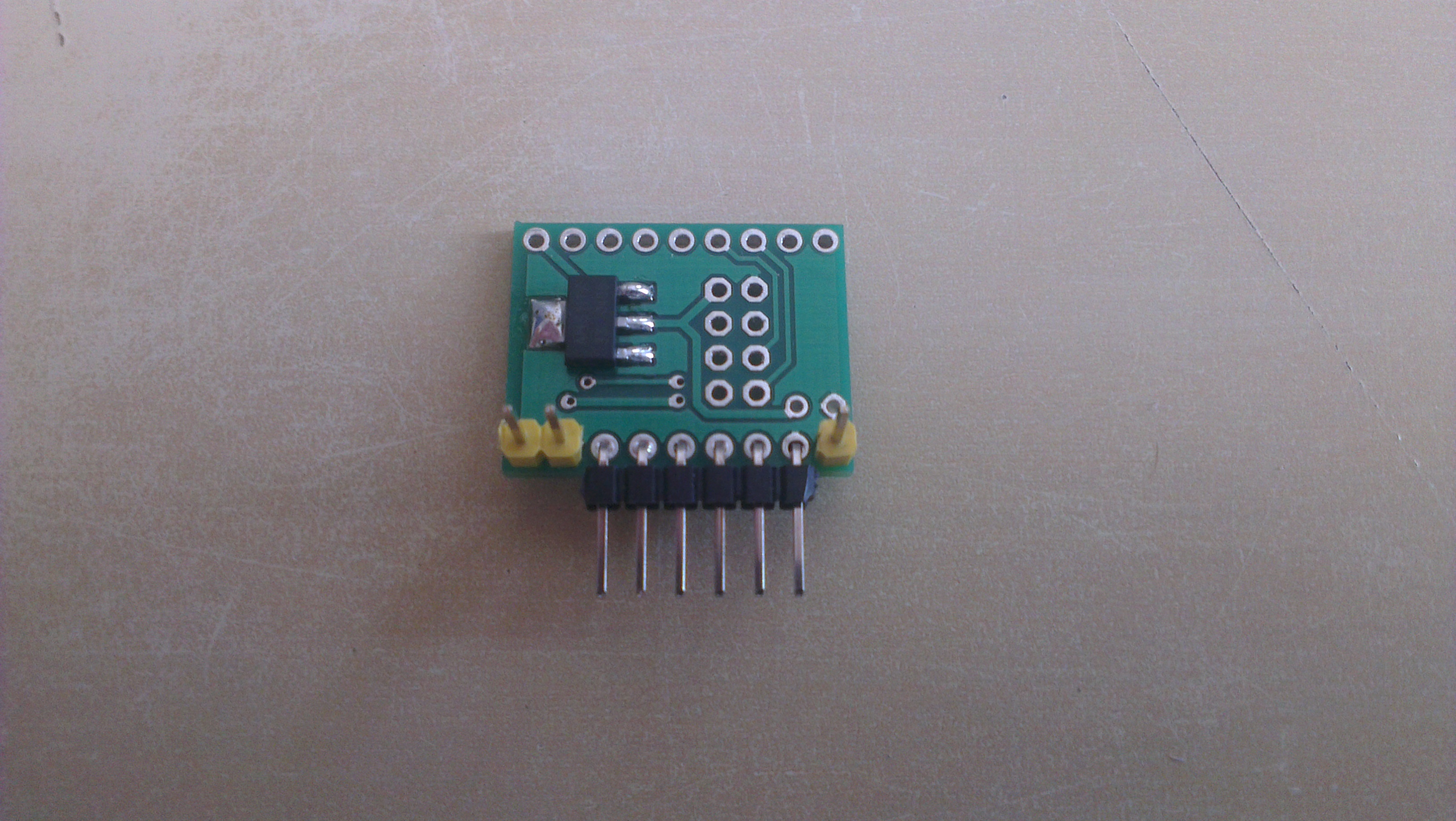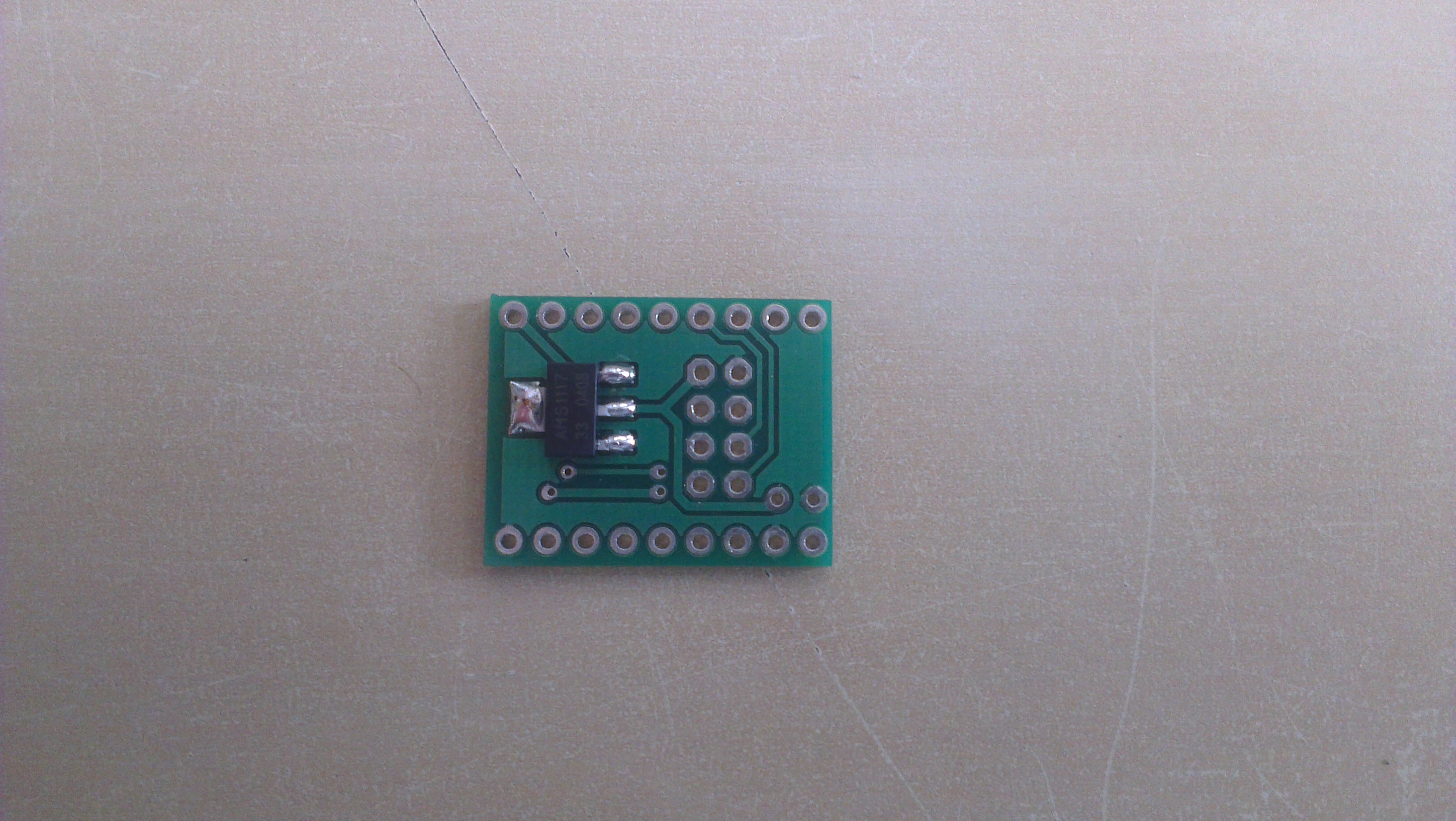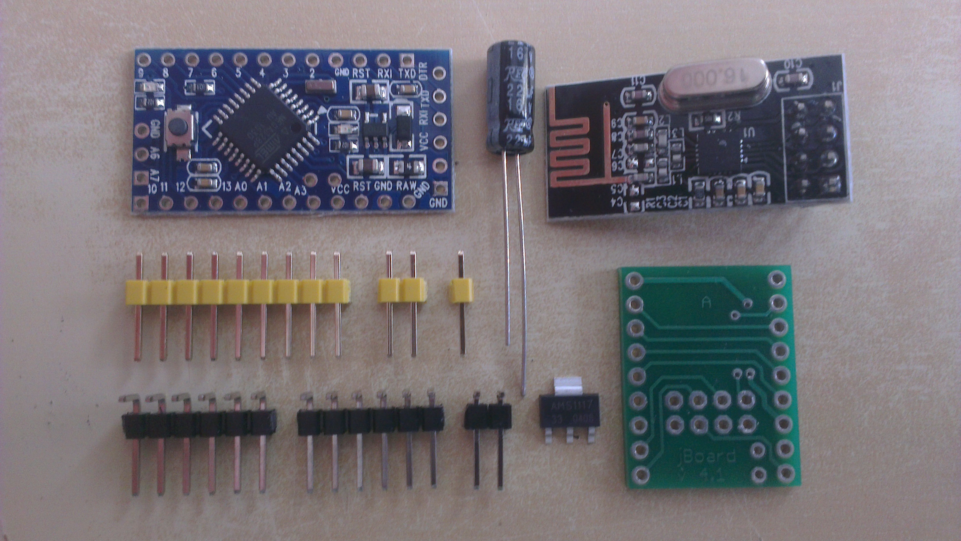 Solder AMS1117 voltage regulator to jBoard. If you use 3v Arduino Pro Mini skip this step. Instead of this make a connection between Vin and Vout pads for the regulator on the jBoard.