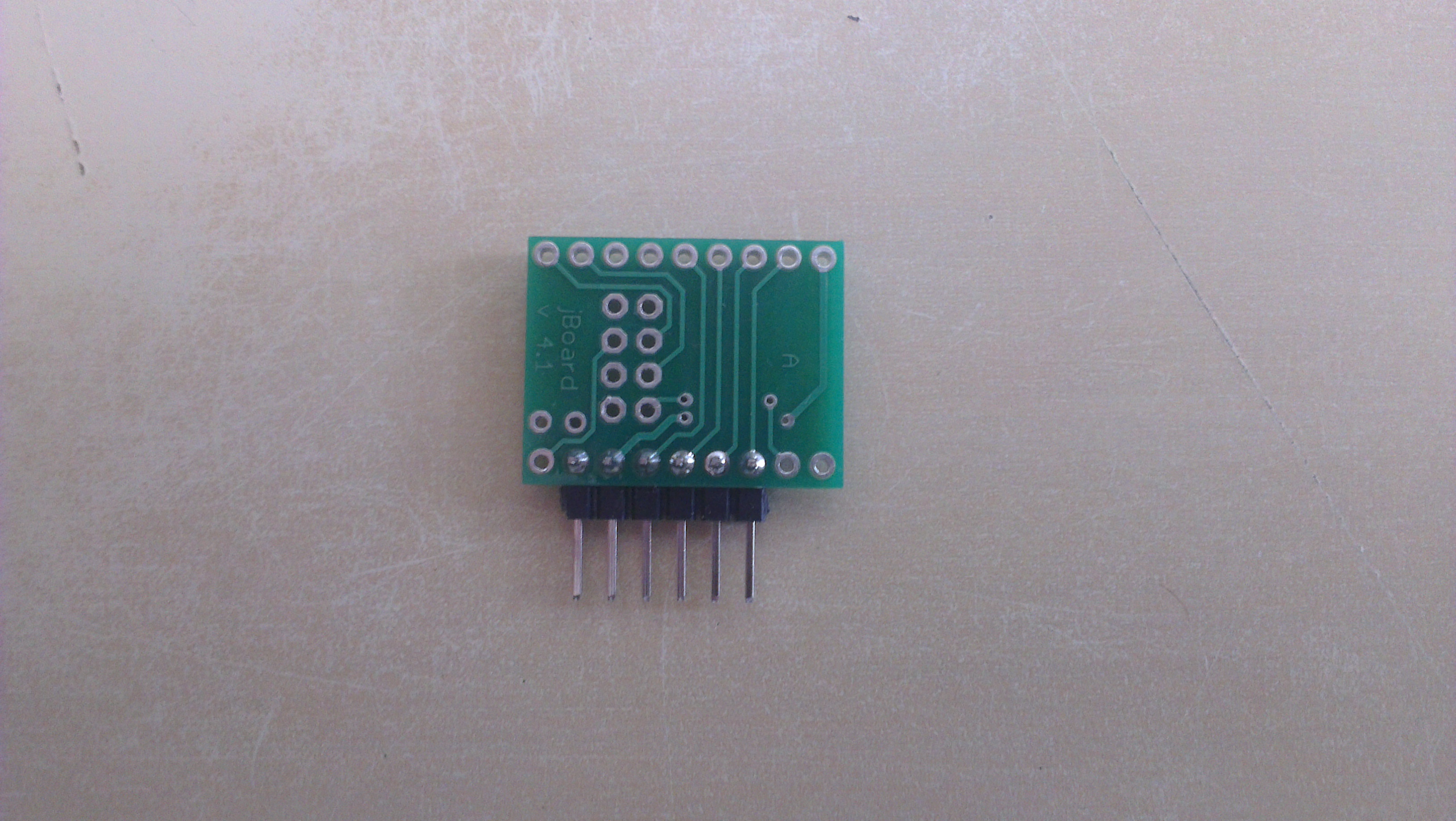 Solder 1x6 angular goldpin header to jBoard.