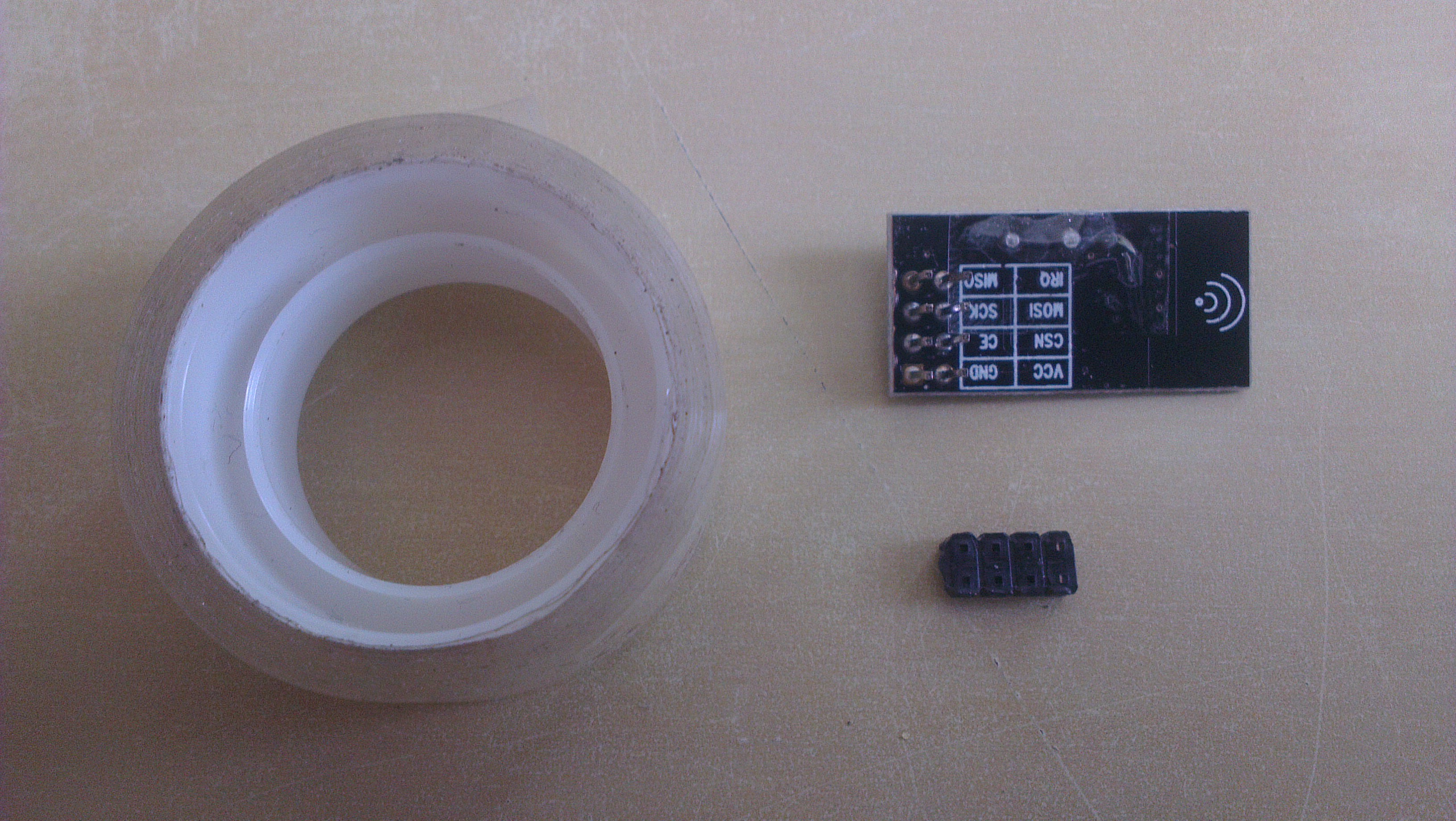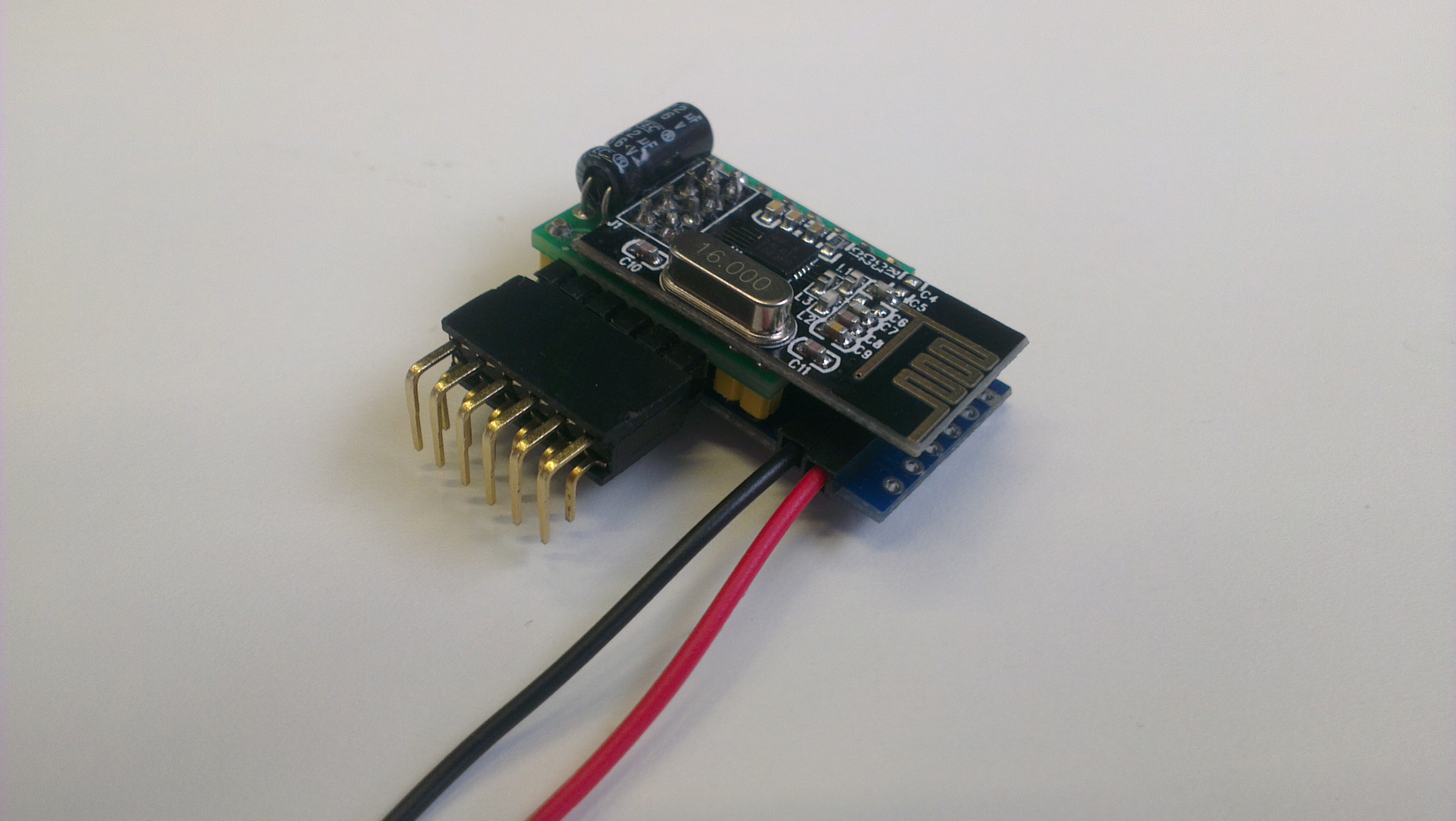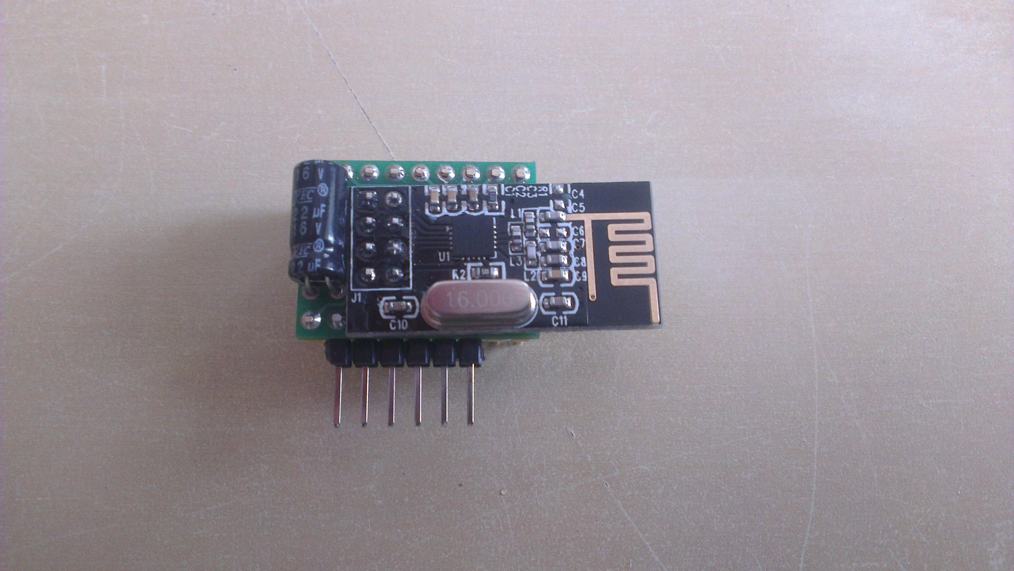 Solder nRF24L01 module and decoupling capacitor to jBoard. Cut off protruding headers.