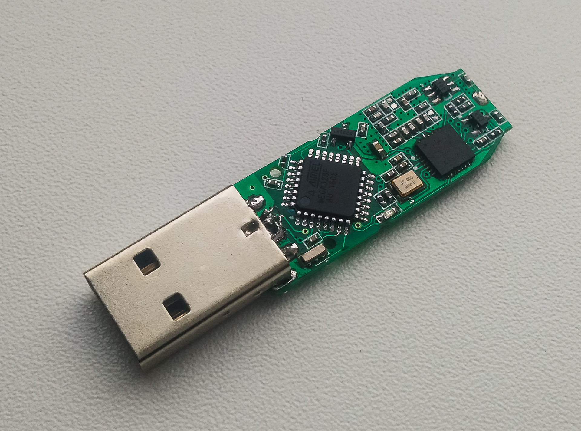 Very small board (36x14mm). The radio (17/20db) was routed from scratch. Will not take the place of nearest usb, only one usb :)