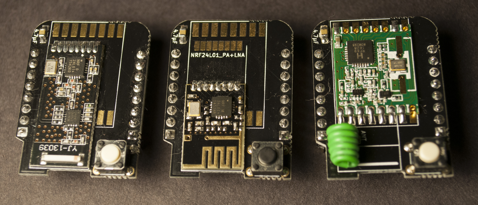 Simple MySensors WeMos Mini gateway shield with support for 3 radio modules: SMD NRF24L01+, SMD PA+LNA NRF24L01+ or SMD RFM69HW.