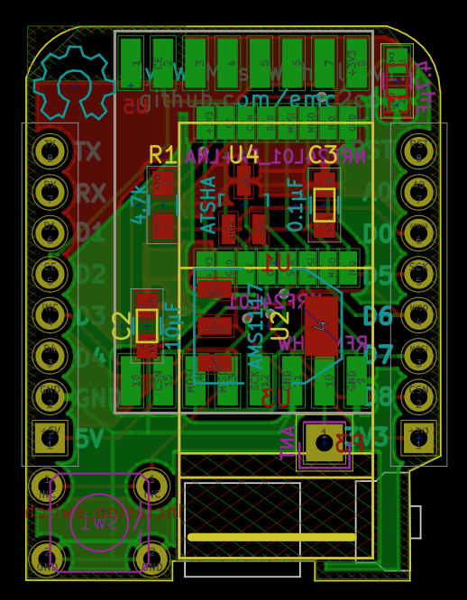 This project use the Kicad footrpints and templates for wemos D1 mini board library.