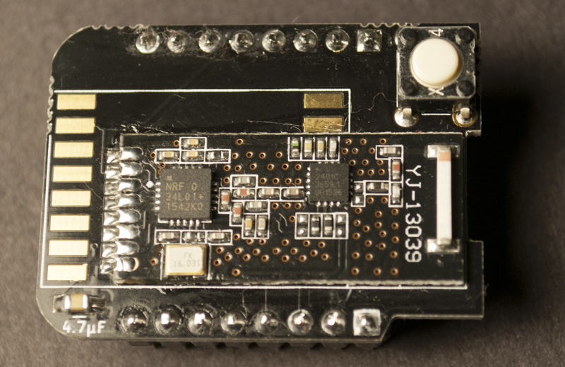 Simply solder your favorite radio module to the corresponding trace and a 4.7 to 47µF SMD 0805 capacitor on the top side of the PCB. It is also recommended to solder the 0.1µF and 10µF SMD 0805 capacitors but not required unless you add some of the optional components.