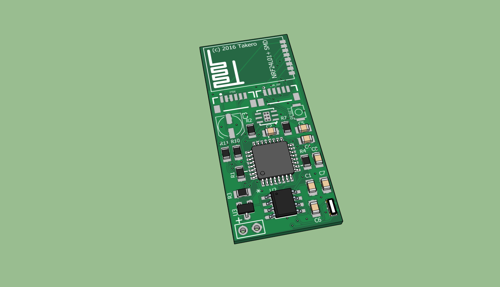Powered by 2 AA Batteries Size 20 x 45 (mm) Almost SMD 0805 Atmel328p TQFP32 NRF24I01 smd ATSHA204A chip FLASH for OTA FTDI, ISP SHT21 Sensor