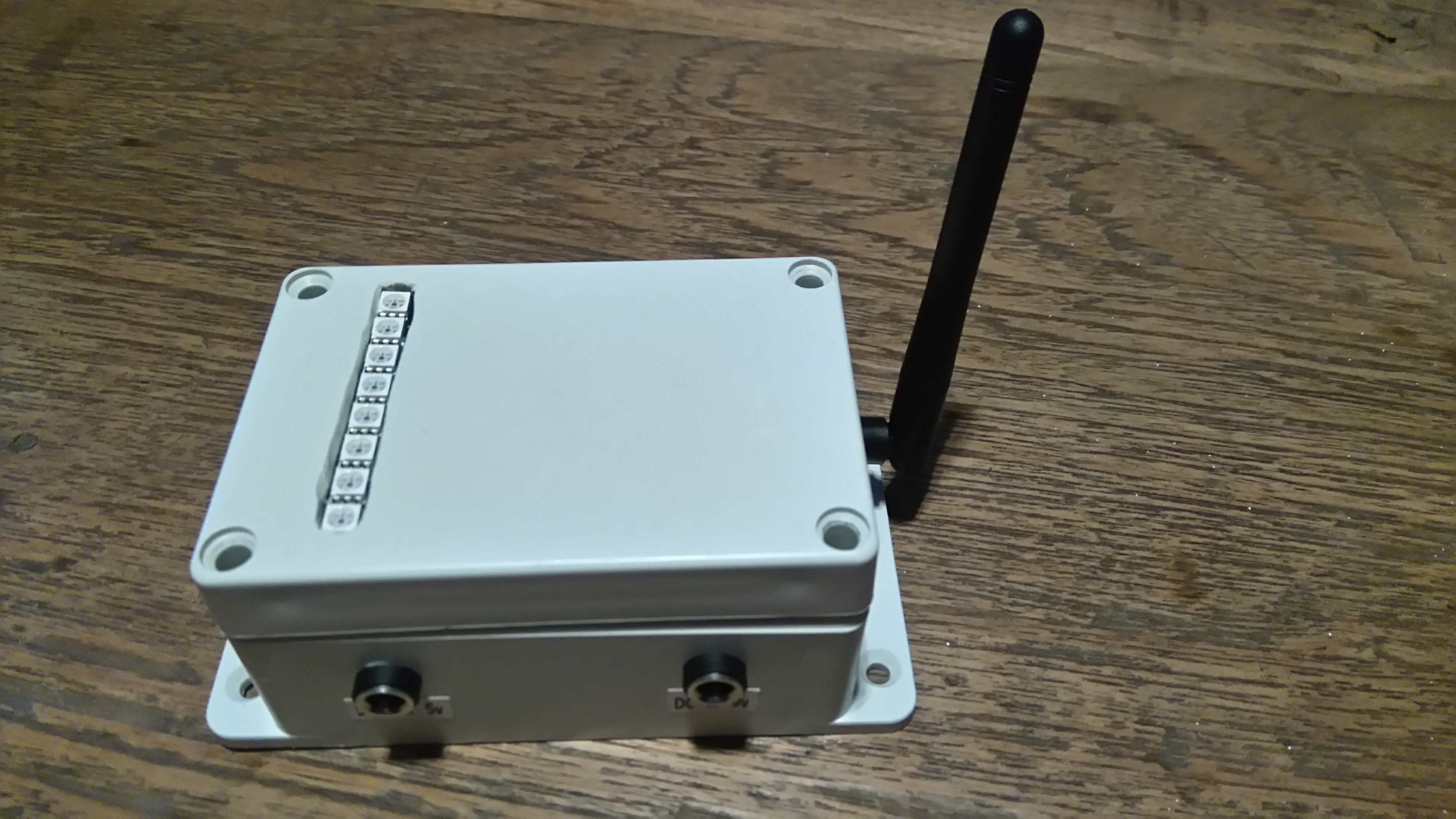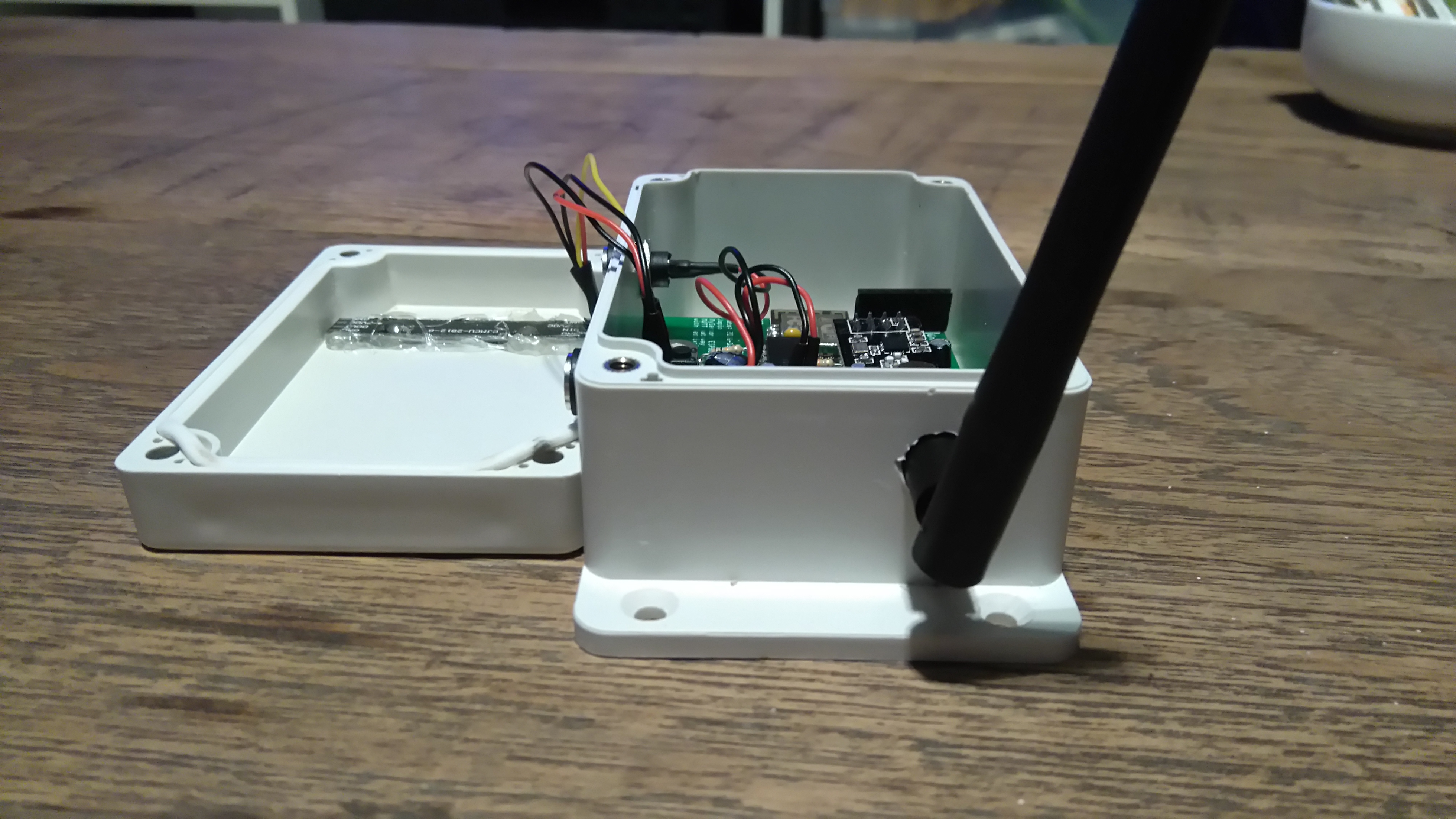 Cut a hole in the enclosures cover to accommodate the Neopixel stick. I glued the stick to the enclosure with some hot-melt glue