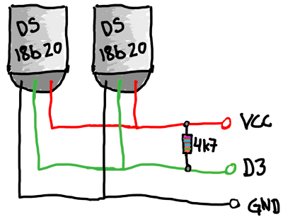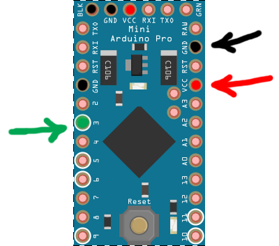 Sensor Arduino Comment GND (left pin) GND Marked black VCC (right pin) VCC (3.0-5.5V) Marked red DQ (middle pin) Digital pin 3 Marked green