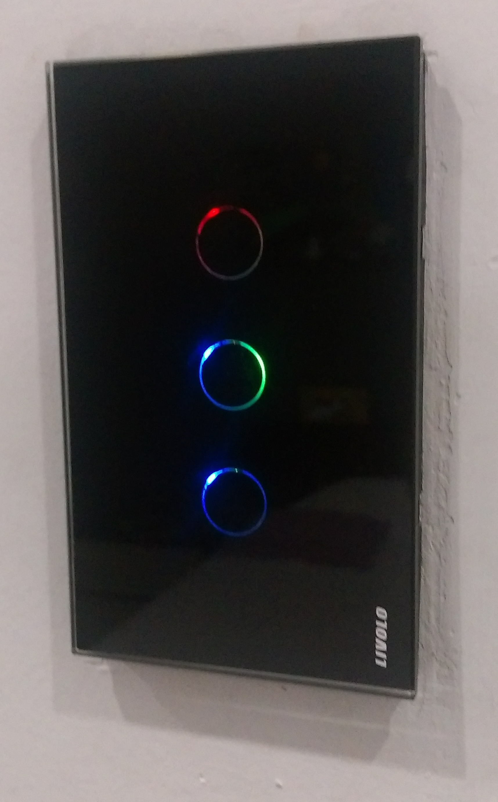 This is a MySensors adapter for Livolo 3 button touch wall switch, US/AU size. It will also work for one button switch by putting components for the central button only.