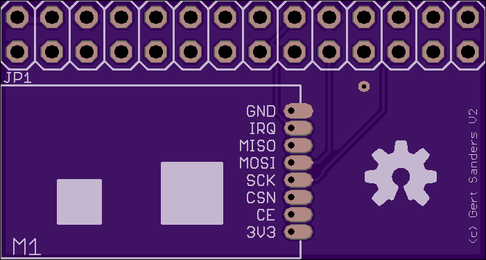 The IRQ pin of the NRF24L01+ module is connected to PIN18 on the Raspberry header.