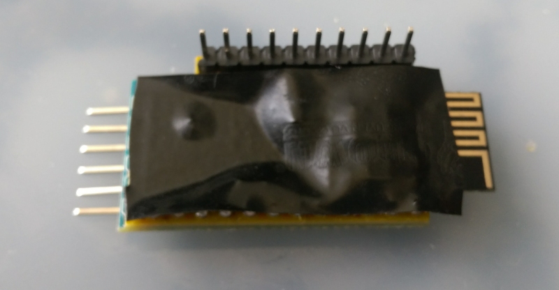 To avoid any possibility of shortcuts while I put the shield as close to the NModule as possible to reduce thickness, I put some electric tape on the full surface of the NModule.