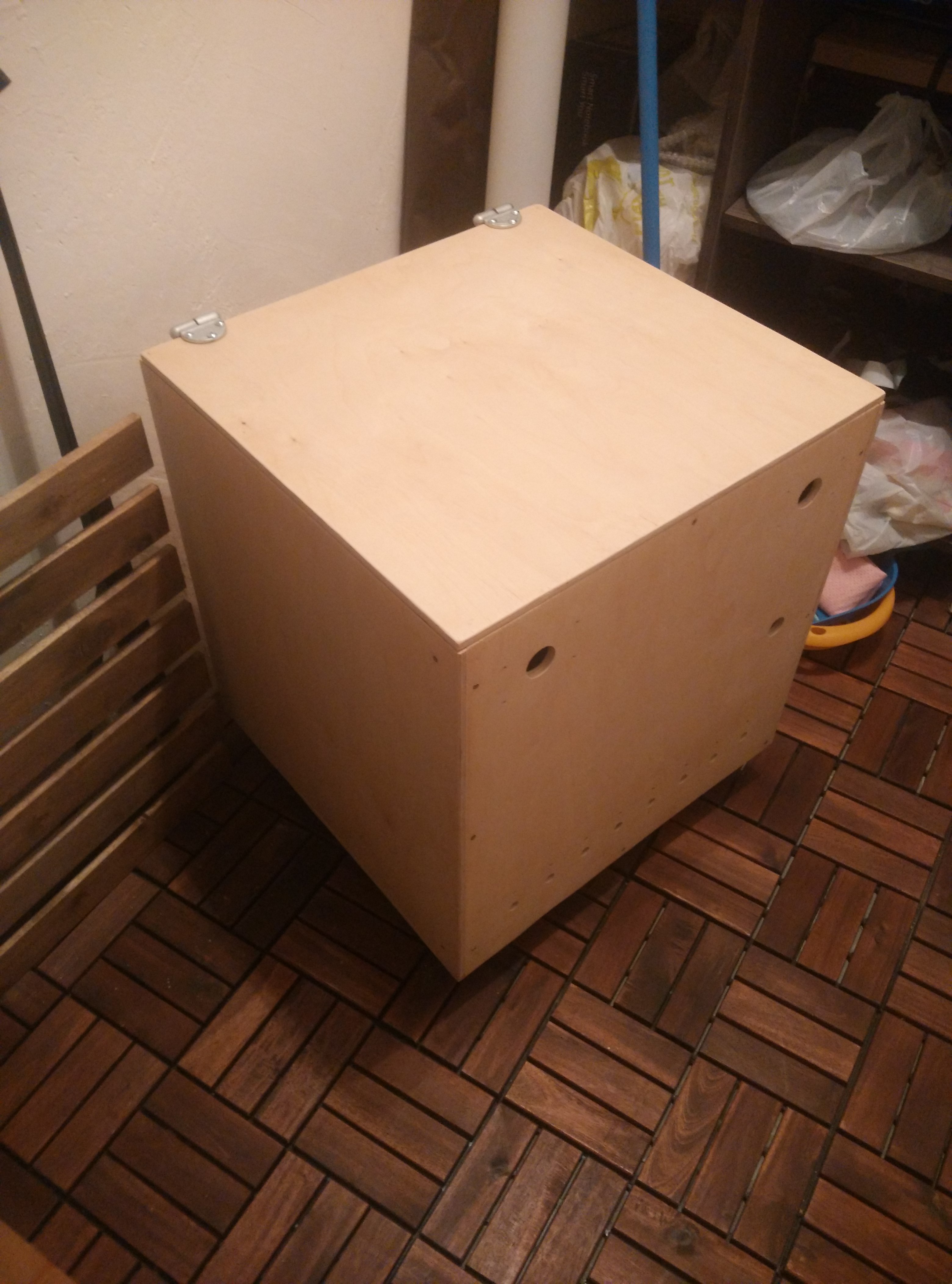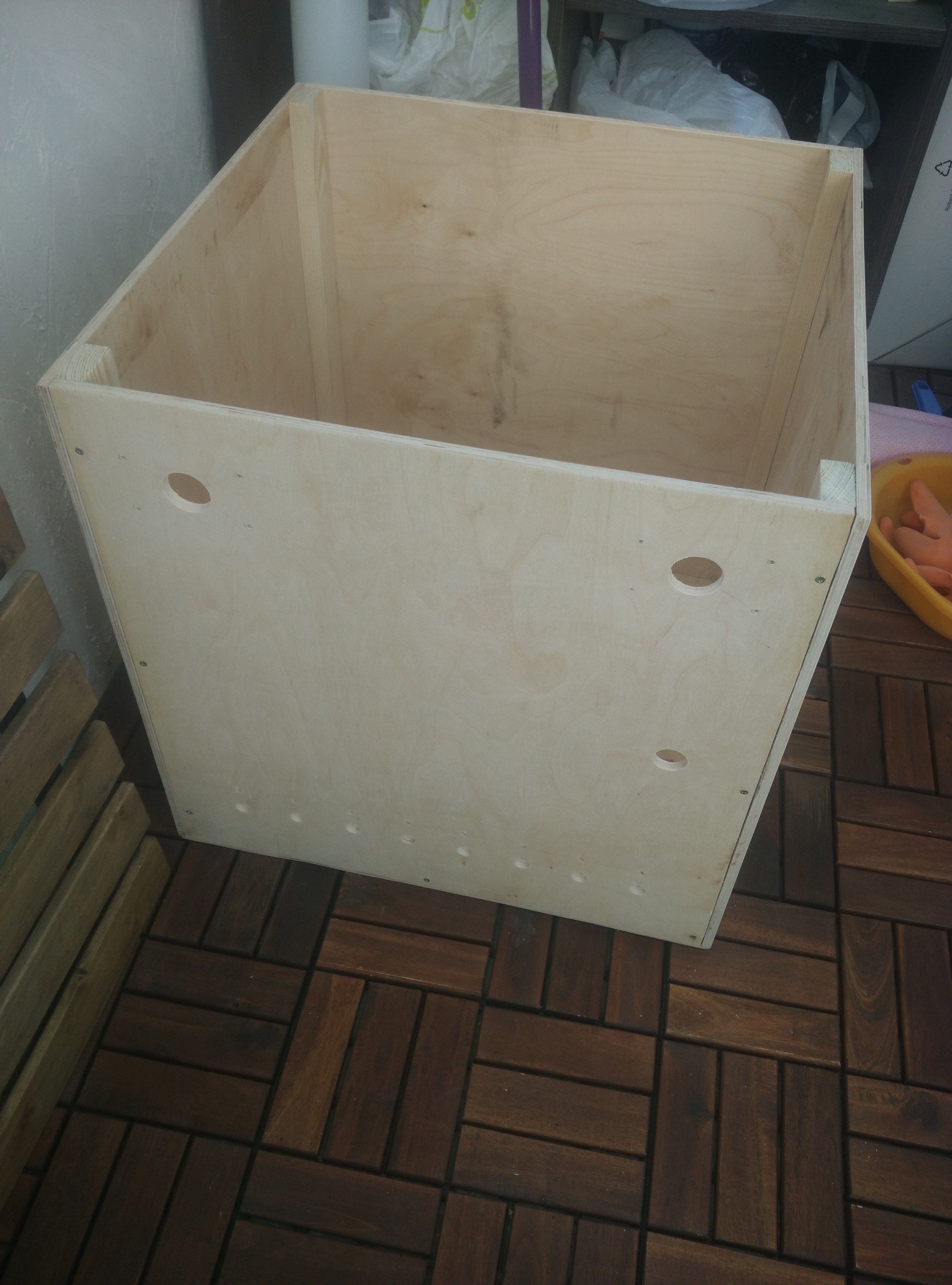 If you are woodworker or you are Jack of all trades it is not problem for you but it is not my case. I decided to make the box from 8mm plywood. Not so easy but I saw off almost equal cube planes (50x50cm)