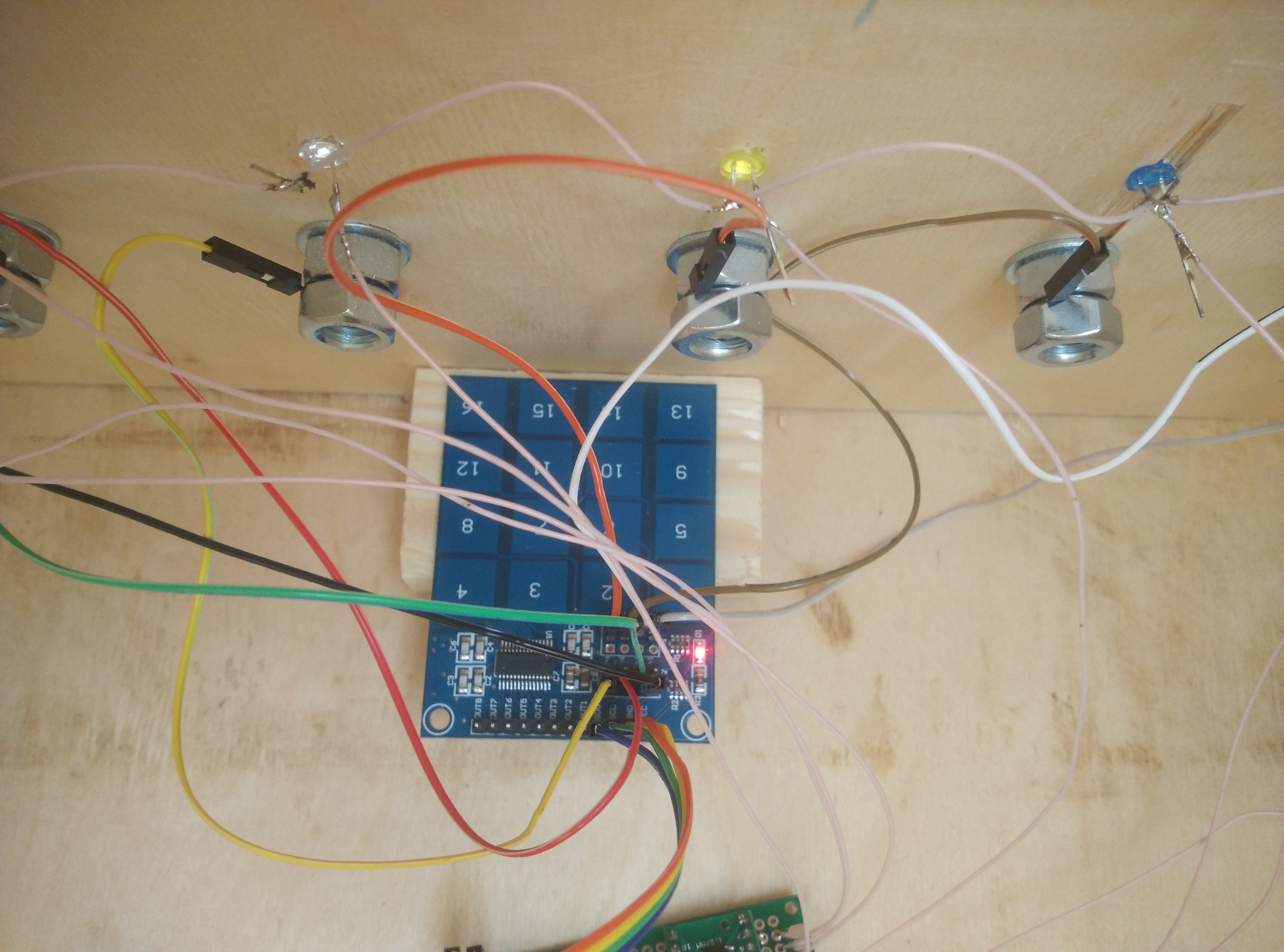I decided to use arduino touchpad based on the TP229 chip. I was not sure it will pass calibration with my buttons but it works fine. I found "buttons" in the tool shop.