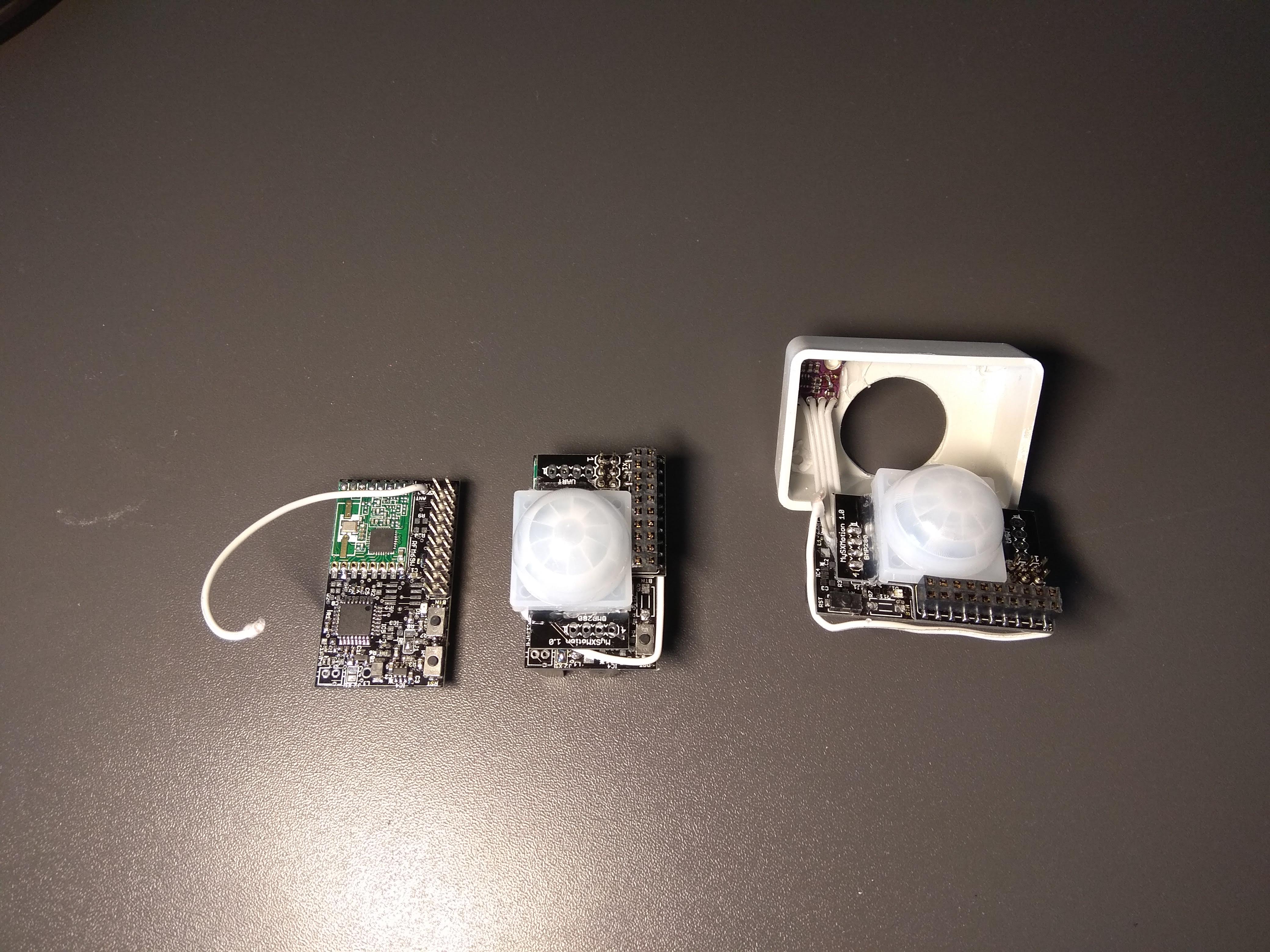 Motion sensor node. Motion sensor such as AS312 consumes quite a lot of power and needs voltage between 2.7V and 3.3V. Powering it directly with 3V battery is not good, so we could use the boost converter. But boost converter makes to much noise for AS312 to work properly. The AS312 works the best with 3V LDO, so the power source should have higher voltage. The best options is to use 3.7V 16340 rechargable li-ion battery which fits into CR123A battery holder. Use TPS782 LDO option to power the MCU and RF module and short the J2 jumper to power the VRAW pin directly with 3.7V battery. Then the motion sensor daugher board should power the AS312 sensor with another LDO from the VRAW pin.