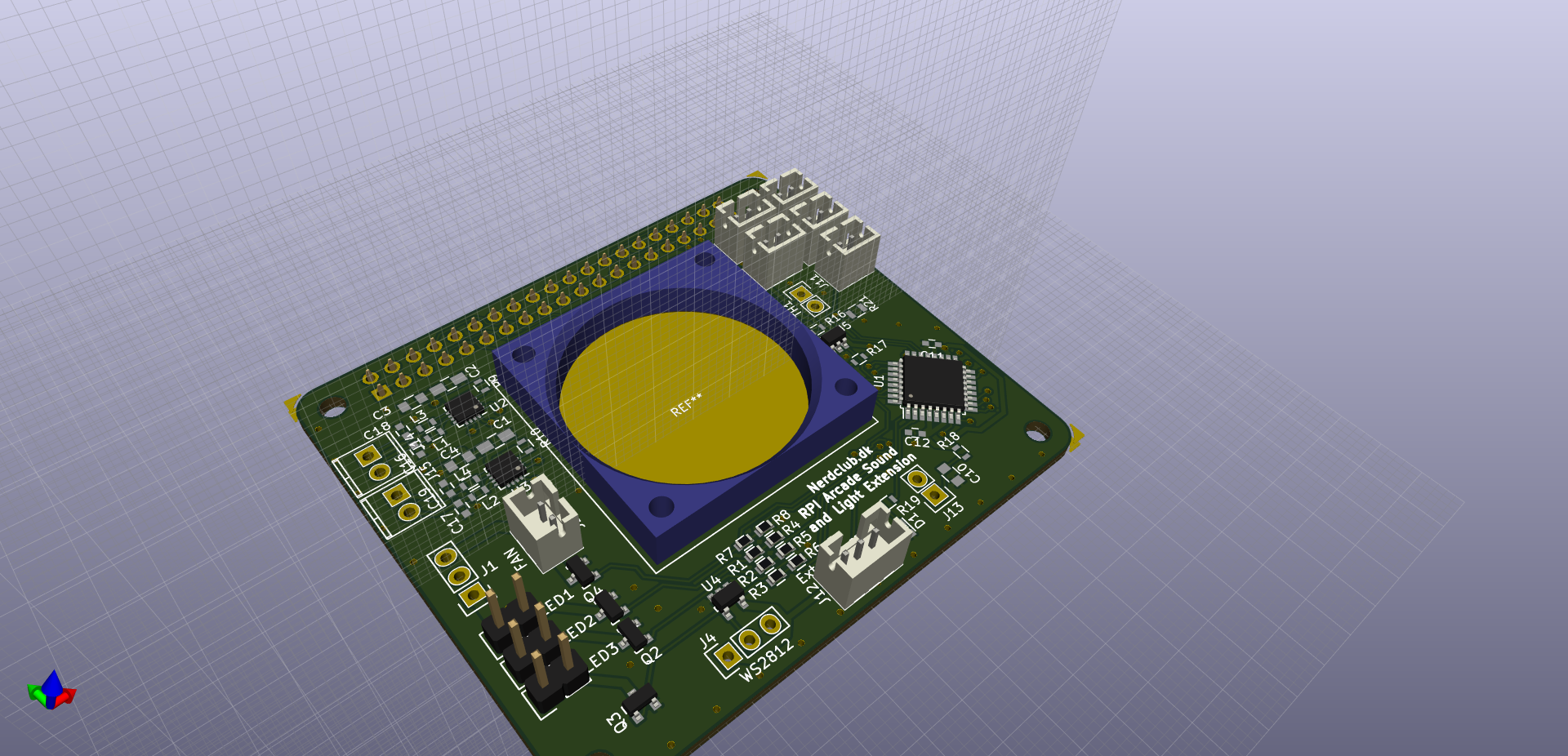 This board is an extension board for an arcade cabinet build by the members of Nerdclub.dk, main reason is to be able to make propper shutdown of the arcade cabinet / rpi, and for making easy light control during startup / shutdown sequences.