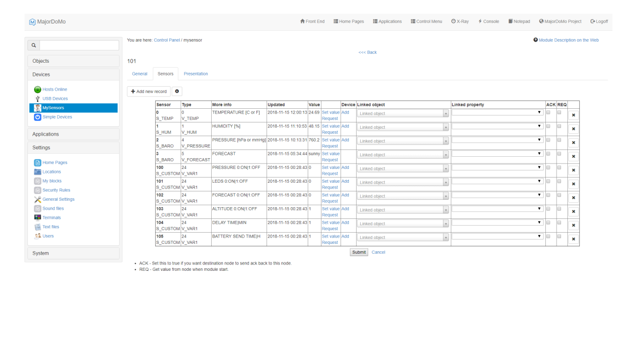 Led highlighting the status of the connection to the network, sending the readings from the sensor. Parameter adjustment via the controller: the LED is on / off, the interval of sending the temperature, humidity, atmospheric pressure, weather forecast readings is 1min - 4 hours, the interval of sending the battery charge is 1 hour - 7 days.