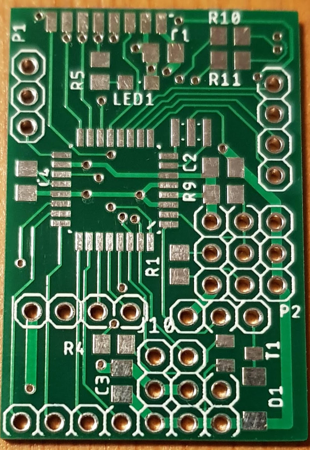 All SMD resistors and capacitors are 0805 sized for easy iron soldering.