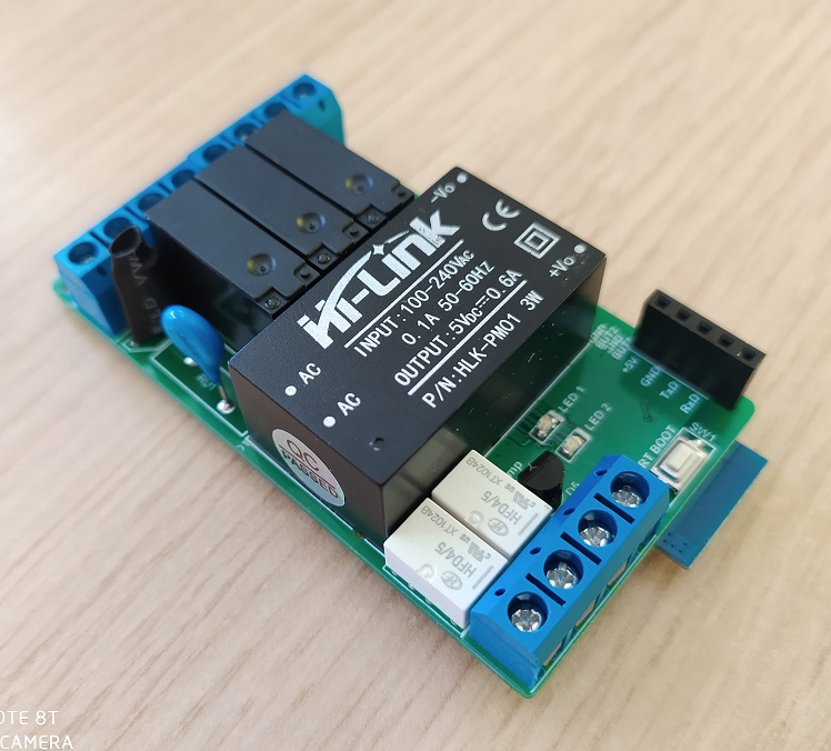 Added two relays for low-voltage operation up to 1A (you can configure relay as normally closed or open by soldering special pads on pcb). It's made, as an example, for remotly managing the computer (you can this relays connect to the computer's power button).
