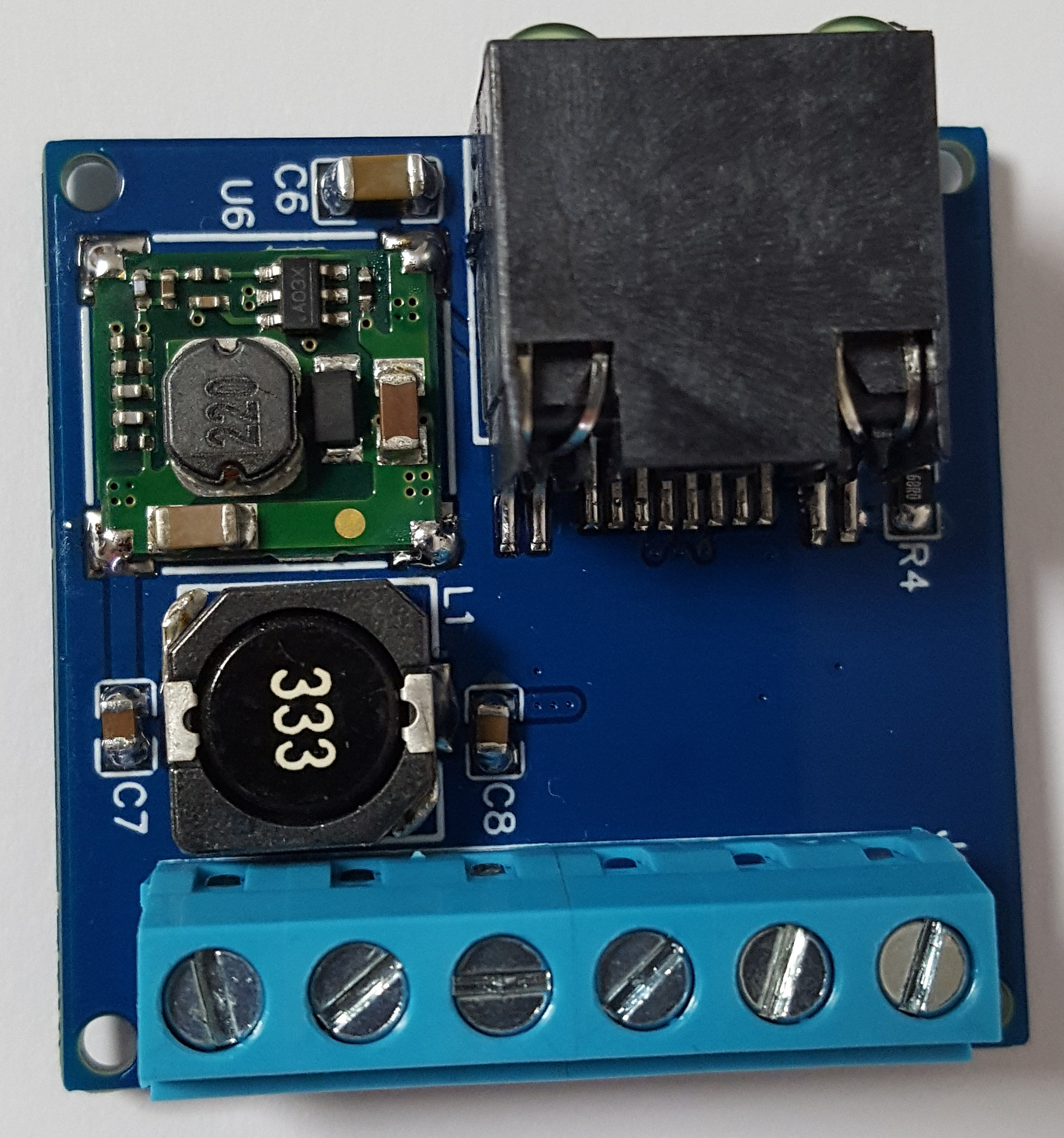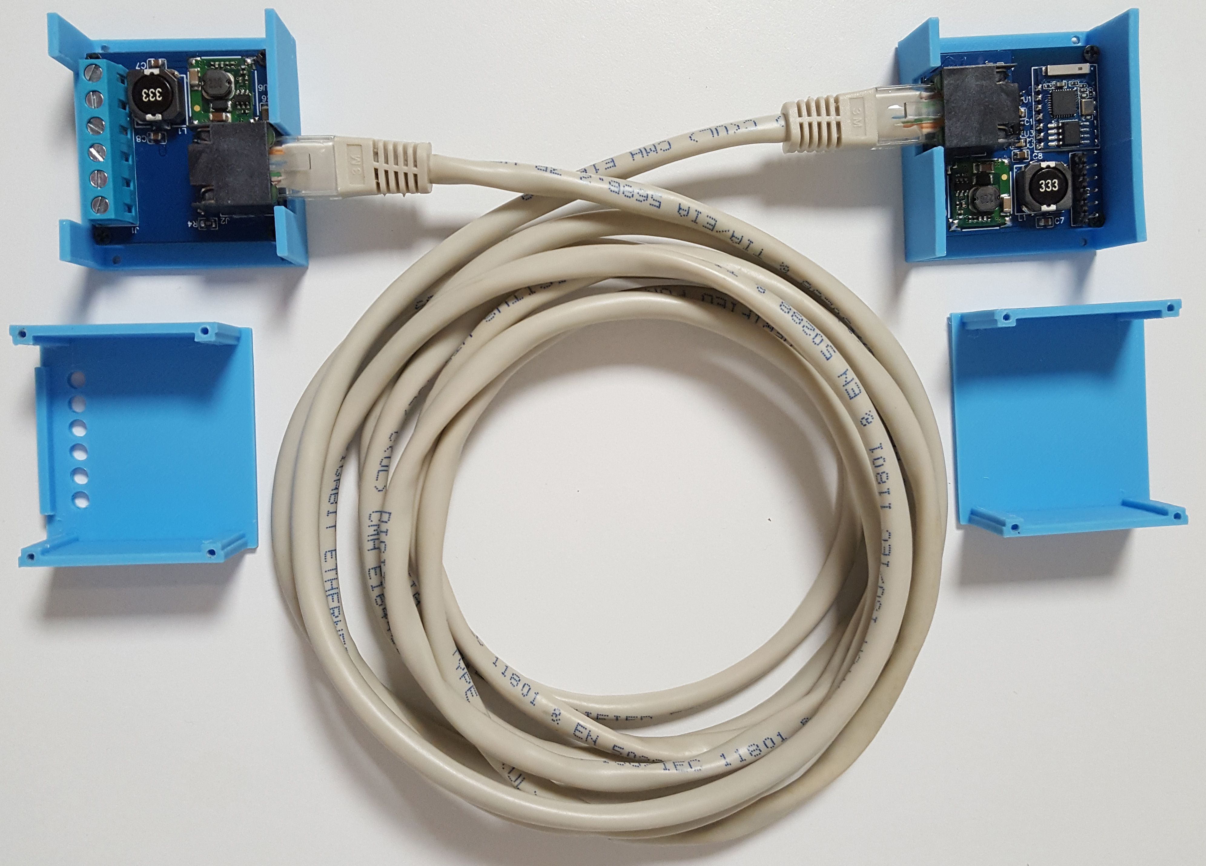 The sender integrates three separate switch debouncers with ESD protected inputs. The power for the junction boxes can be supplied anywhere along the Ethernet cable or at the ends.