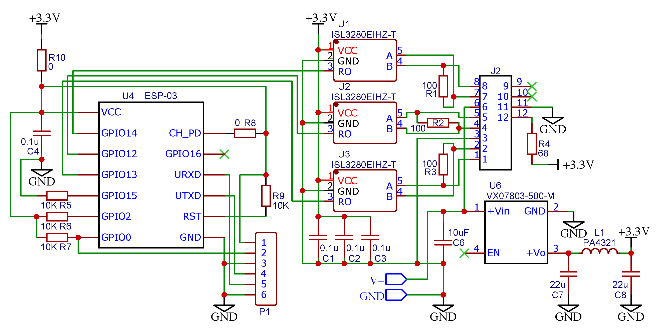 The 6 pins header P1 is used to connect an external FTDI programmer to flash the ESP8266 firmware. The pinout is: